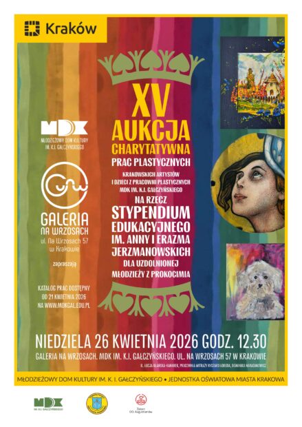 Młodzieżowy Dom Kultury oraz Towarzystwo Przyjaciół Prokocimia zaprasza na coroczną aukcję prac plastycznych na rzecz Stypendium im. E. i A. Jerzmanowskich dla Uzdolnionej Młodzieży z Prokocimia.